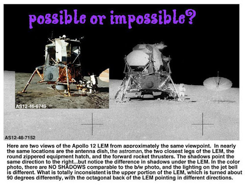 By the way, if you think the photos left on the lunar lander are just weird reflections from the gold Reynolds Wrap. (BELOW) Photo Expert Jack White shows you how you can tell the difference.